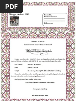 Undangan Khitan from imgv2-2-f.scribdassets.com 37 idetemplate undangan walimah khitan. 100%(8)100% found this document useful (8 votes). Kembali lagi ke contoh undangan aqiqah dalam format doc microsoft word yang bisa di edit. Undangan aqiqah word terbaru cara membuat undangan untuk aqiqah selapanan dan syukuran di ms. Contoh undangan khitanan ms word. Cara membuat format undangan di ms word dan menentukan ukuran undangan full color di word. #microsoftword mari kita buka microsoft wordnya kita belajar lagi otak atik microsoft word sampe bosen, pada video ini kami memberi panduan cara membuat. Berikut contoh contoh undangan tahlil doc ( format ms word ) yang dapat anda download